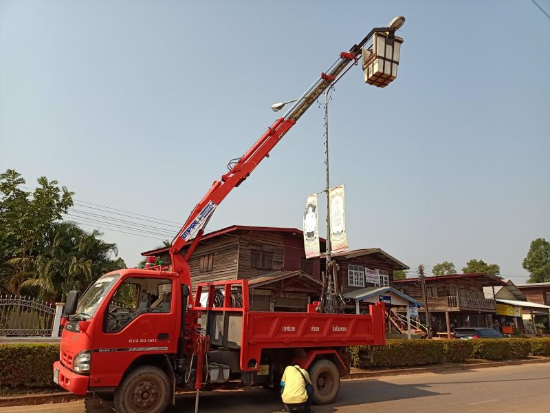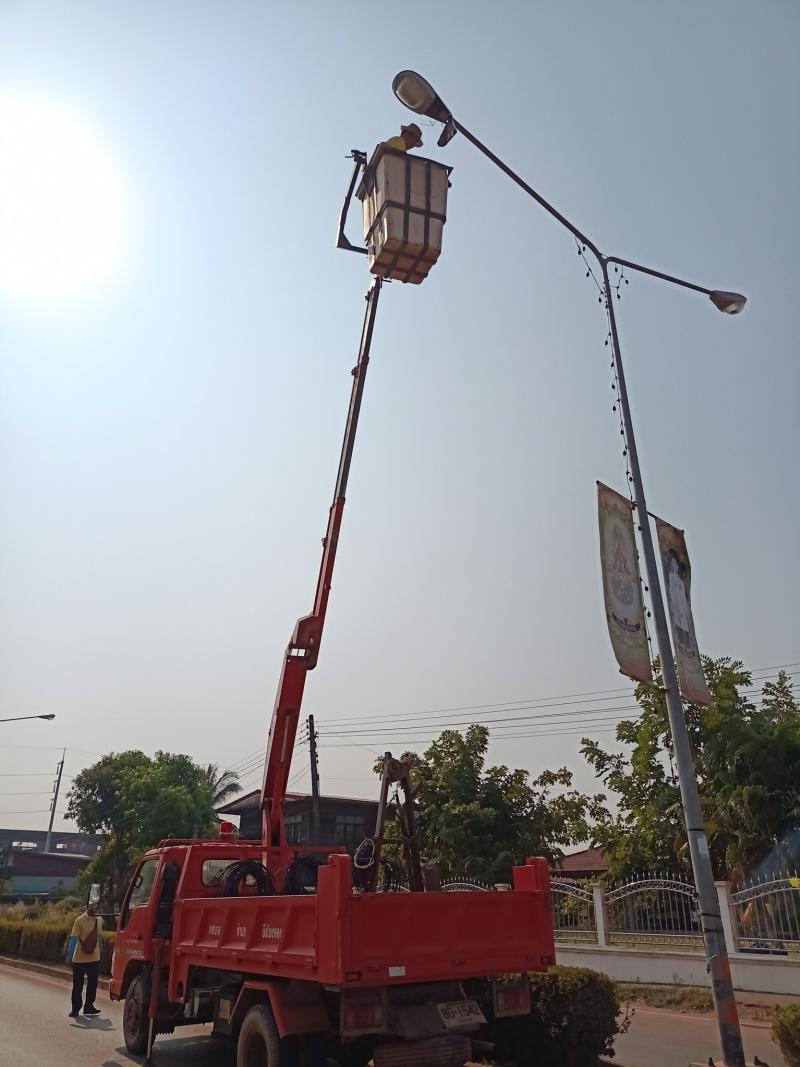 เทศบาลตำบลบึงโขงหลง ตรวจสอบและซ่อมแซมหลอดไฟส่องสว่างจุดที่ชำรุด ให้สามารถใช้งานได้ตามปกติ