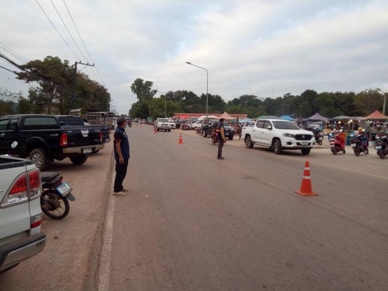 งานป้องกันและบรรเทาสาธารณภัย (งานเทศกิจ) เทศบาลตำบลบึงโขงหลง ปฏิบัติหน้าที่จัดระเบียบการจราจร ตลาดนัดไนท์ (วันจันทร์)