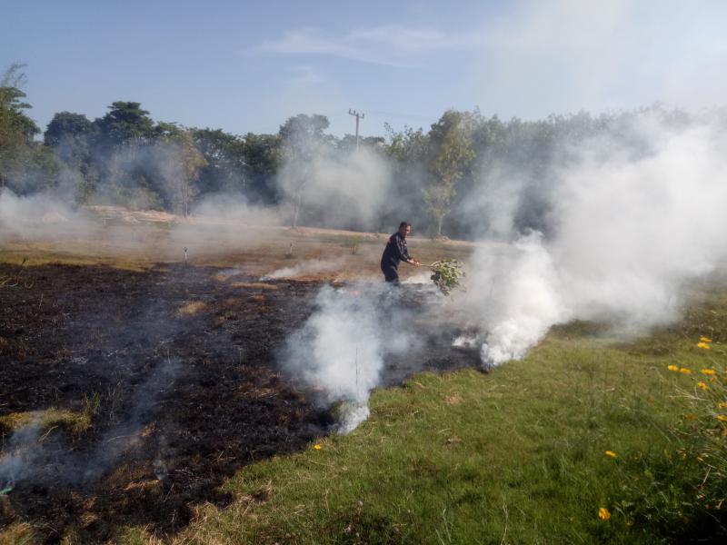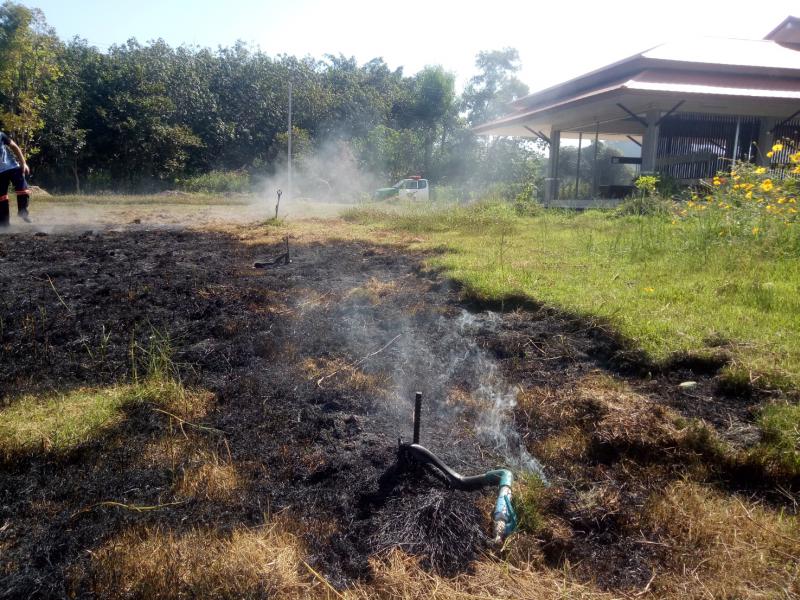 สายตรวจเทศกิจฯ ลงพื้นที่ตรวจความเรียบร้อยบริเวณสวนสาธารณะ พบเหตุเพลิงไหม้สนามหญ้าข้างหอชมนก