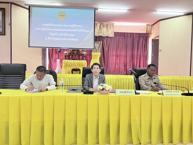 ประชุมรับมอบนโยบายในการปฏิบัติราชการของนายกเทศมนตรีตำบลบึงโขงหลง