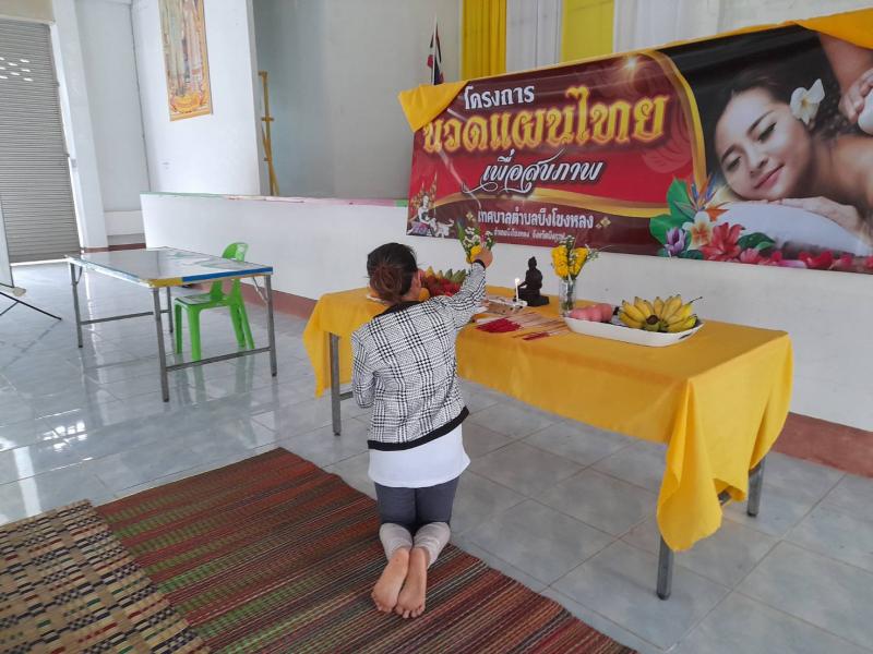 วันที่ 5 ของการอบรมโครงการนวดแผนไทยเพื่อสุขภาพ ทุกวันจะมีพิธีไหว้ครูเพื่อเคารพบูชาและขอพรจากครูบาอาจารย์ และเป็นวันที่ทดสอบการนวดทั้งหมด ที่เรียนมาตั้งแต่วันเปิดเรียนวันแรก