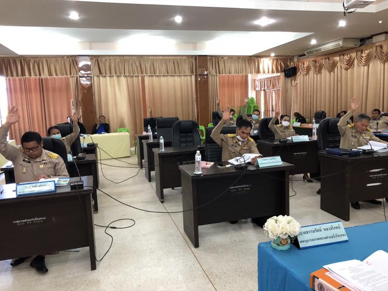 นายสุดใจ แสงโพธิ์ ประธานสภาเทศบาลตำบลบึงโขงหลง สมาชิกสภาเทศบาลตำบลบึงโขงหลง ร.ต.ท.วสันต์ ชัยลา นายกเทศมนตรีตำบลบึงโขงหลง และคณะผู้บริหาร หัวหน้าส่วนราชการ ประชุมสภาเทศบาลตำบลบึงโขงหลง สมัยสามัญ สมัยที่ 4 ประจำปีพุทธศักราช 2565 ณ ห้องประชุมสภาเทศบาลตำบลบึงโขงหลง ชั้น 2