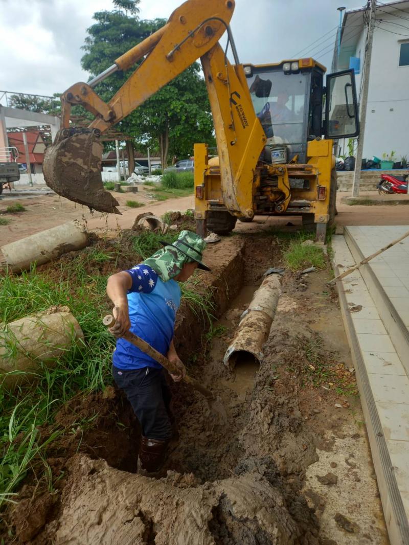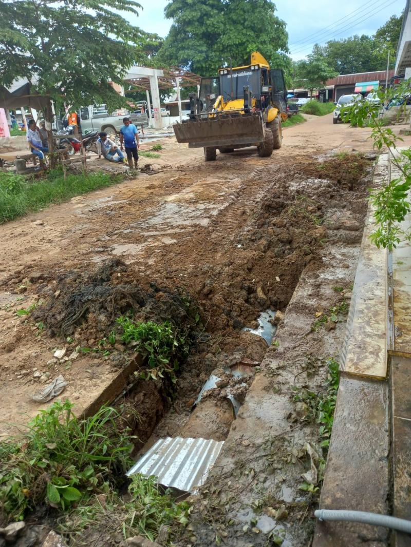 ร.ต.ท.วสันต์ ชัยลา นายกเทศมนตรีตำบลบึงโขงหลง มอบหมายให้ นายคมกฤษ ภาษี รองนายกเทศมนตรี นำทีมเจ้าหน้าที่กองช่างขุด พร้อมวางท่อระบายน้ำ บริเวณหลังอาคารพาณิชย์