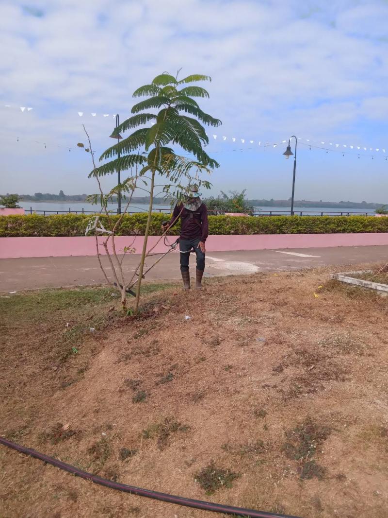 ร.ต.ท.วสันต์ ชัยลา นายกเทศมนตรีตำบลบึงโขงหลง มอบหมายชุดเฉพาะกิจเทศบาลตำบลบึงโขงหลง ตัดหญ้า ทำความสะอาดบริเวณสวนเฉลิมเกียรติ เพื่อปรับภูมิทัศน์ให้สะอาด สวยงาม