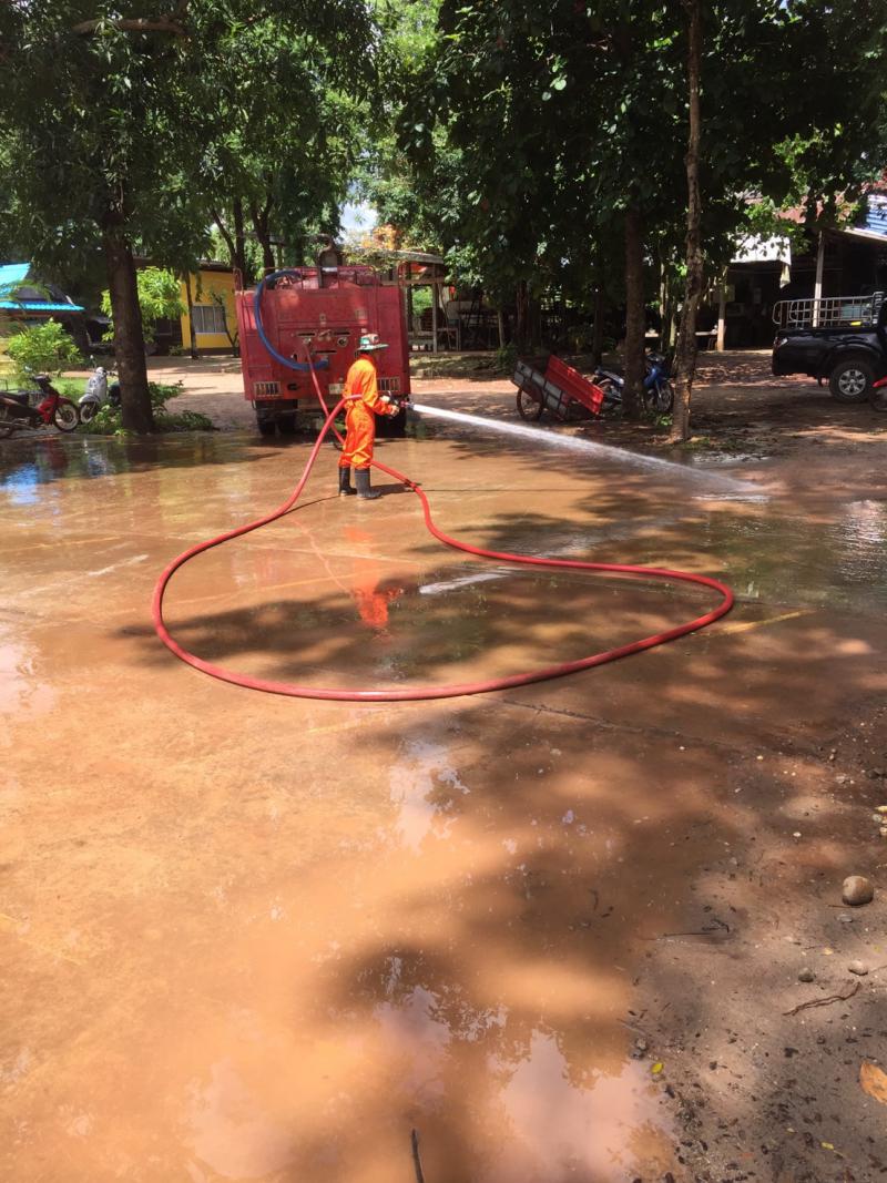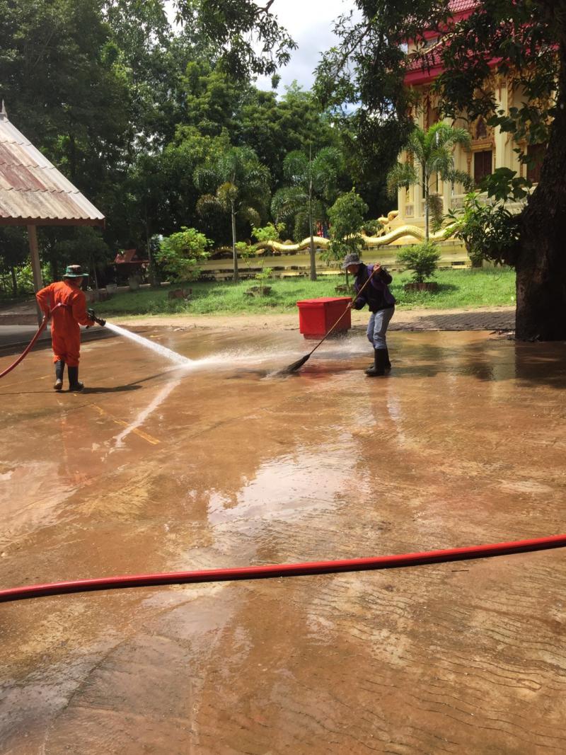วัดศิริมงคลวราราม ขอความอนุเคราะห์เทศบาลตำบลบึงโขงหลง ทำการฉีดล้างทำความสะอาดบริเวณภายในวัด