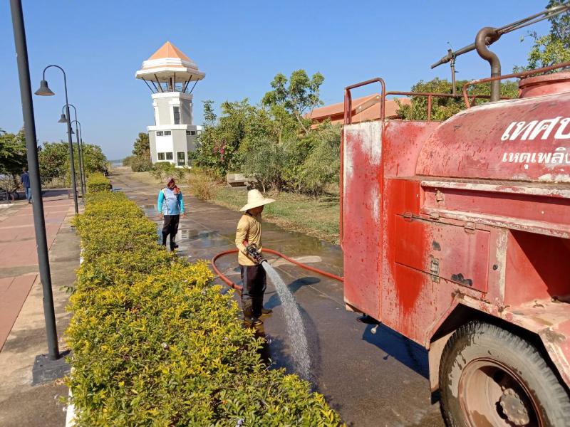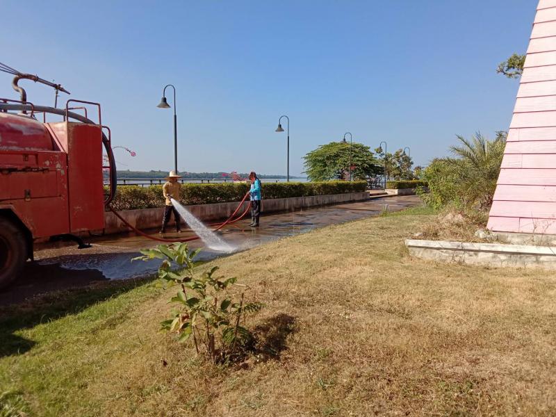 ร.ต.ท.วสันต์ ชัยลา นายกเทศมนตรีตำบลบึงโขงหลง มอบหมายให้นายทัตธยา ชนกชนีกุล รองนายกเทศมนตรี นำทีมเจ้าหน้าที่งานป้องกันฯปฏิบัติหน้าที่ฉีดล้างพื้นและถนน รอบสวนเฉลิมพระเกียรติฯ