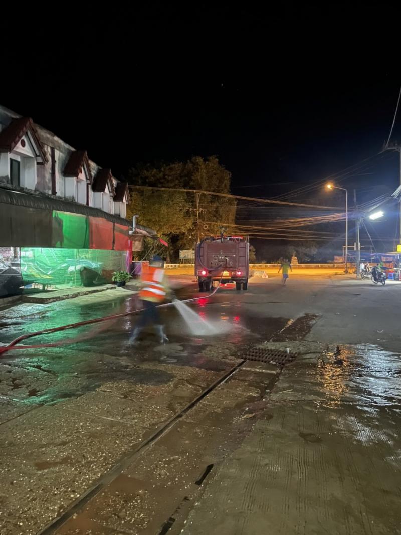เวลา 19.00 น. ร.ต.ท.วสันต์ ชัยลา นายกเทศมนตรีตำบลบึงโขงหลง มอบหมายให้งานป้องกันและบรรเทาสาธารณภัย เทศบาลตำบลบึงโขงหลง นำรถบรรทุกน้ำดับเพลิง เอนกประสงค์ ฉีดล้างถนน จากหน้าโรงเรียนบึงโขงหลงวิทยาคม ผ่านเซเว่นอีเลฟเว่น และล้างบริเวณตลาดพาแลง (โต้รุ่ง) เพื่อให้เกิดความสะอาด ลดฝุ่นละออง ลดความสกปรกของดิน-หินลูกรัง บนถนน