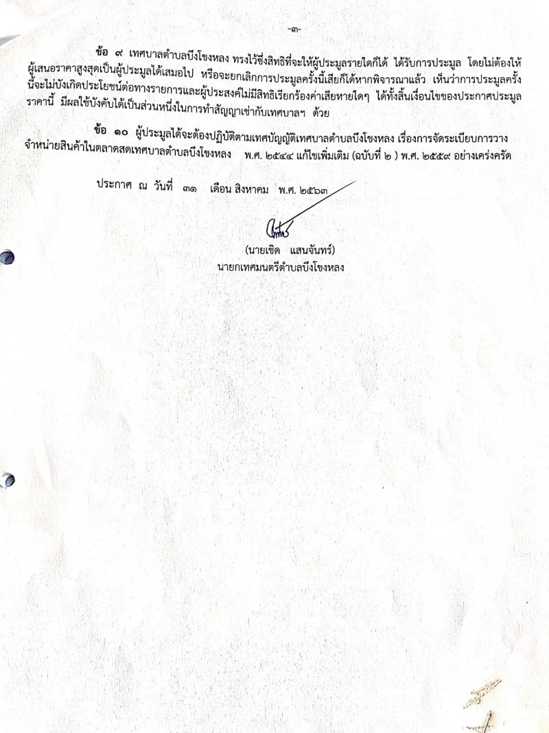 เทศบาลตำบลบึงโขงหลง ให้เช่าอาคารตลาดสด/ห้องน้ำตลาดสด โดยวิธีประมูล ผู้สนใจ ติดต่อสำนักงานเทศบาลตำบลบึงโขงหลง