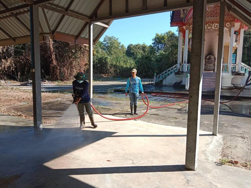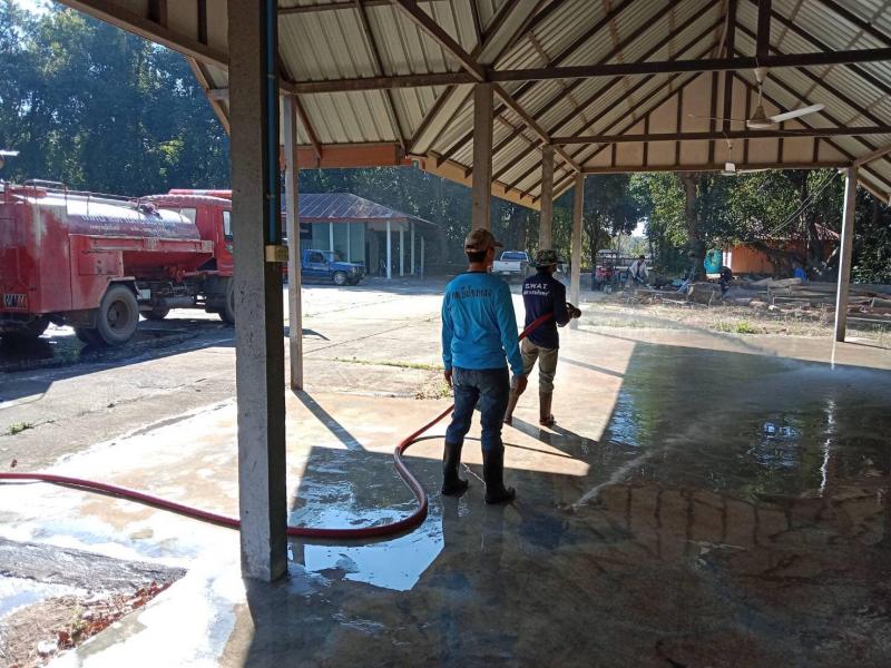 งานป้องกันและบรรเทาสาธารณภัย เทศบาลตำบลบึงโขงหลง นำรถบรรทุกนำ้ดับเพลิง เอนกประสงค์ ฉีดล้างพื้น ทำความสะอาดบริเวณเมรุวัดสว่างวารี บ้านดอนกลาง