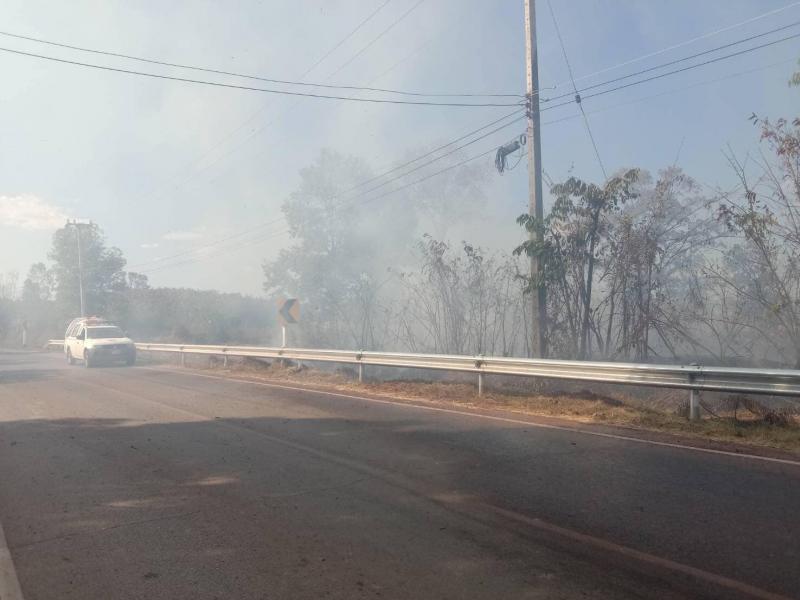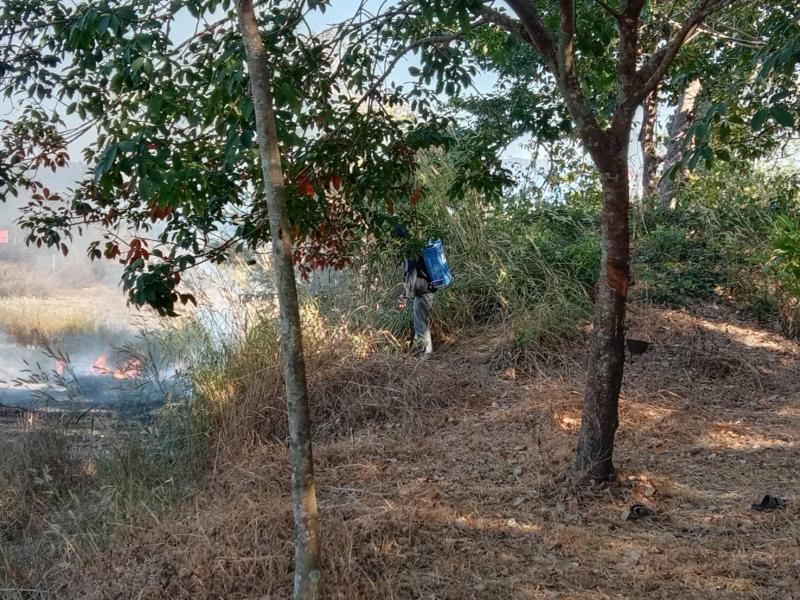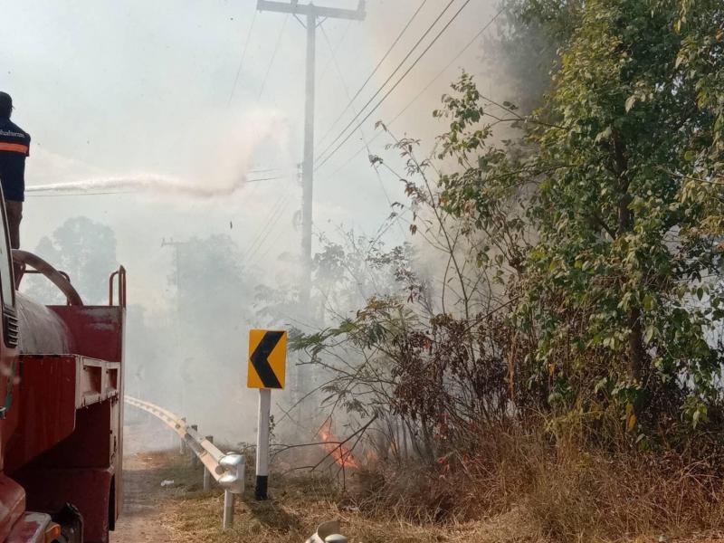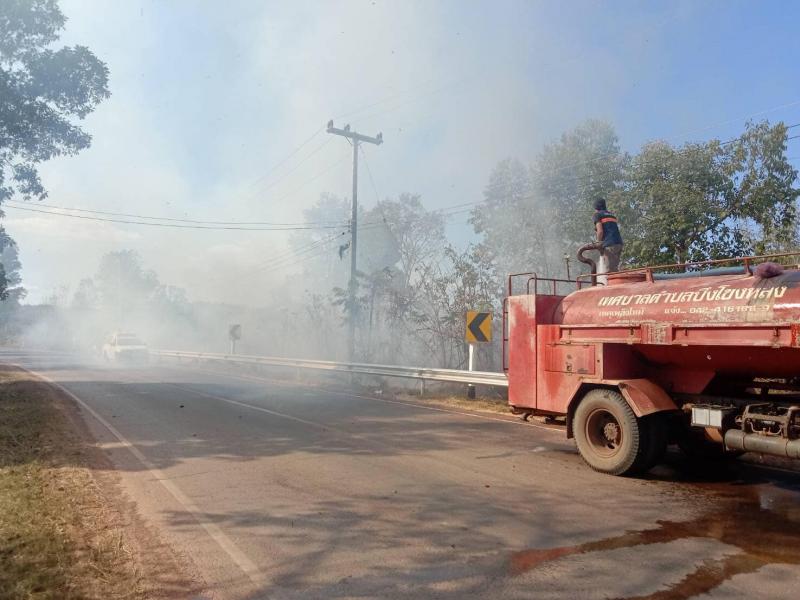 งานป้องกันและบรรเทาสาธารณภัย เทศบาลตำบลบึงโขงหลง ได้รับแจ้งเหตุไฟไหม้ทุ่งนา บริเวณต้นยางใหญ่