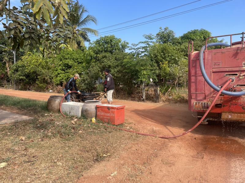 ร.ต.ท.วสันต์ ชัยลา นายกเทศมนตรีตำบลบึงโขงหลง มอบหมายให้งานป้องกันและบรรเทาสาธารณภัย เทศบาลตำบลบึงโขงหลง นำรถบรรทุกน้ำ ดับเพลิง เอนกประสงค์ ส่งน้ำให้ประชาชนบ้านทรายทอง หมู่ที่ 17 ต.บึงโขงหลง เพื่อใช้ในการอุปโภคและบริโภค