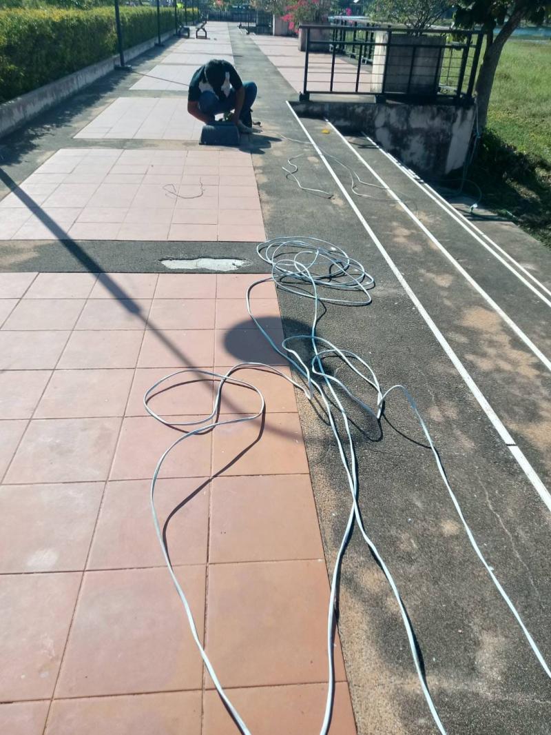 ร.ต.ท.วสันต์ ชัยลา มอบหมายให้เจ้าหน้าที่กองข่างออกปฏิบัติหน้าที่เดินระบบสายไฟและติดตั้งสปอร์ตไลท์ ส่องสว่างภายในสวนเฉลิมพระเกียรติฯ