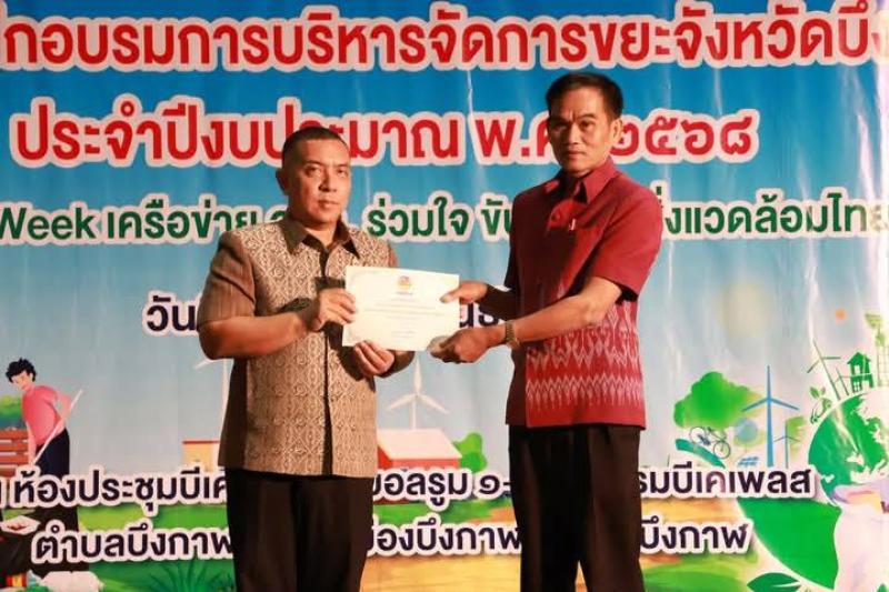 วันศุกร์ ที่ 14 กุมภาพันธ์ 2568 นายกเก่ง นายวิทยา ภารจรัส นายกเทศมนตรีตำบลบึงโขงหลง มอบหมายให้นายน้อย ลอมไธสง รองนายกเทศมนตรีตำบลบึงโขงหลงเข้าร่วมรับรางวัลธนาคารขยะต้นแบบอำเภอบึงโขงหลง และมอบหมายให้ นายประเนตร พระสว่างผู้อำนวยการกองสาธารณสุขและสิ่งแวดล้อมนำตัวเเทนอาสาสมัครท้องถิ่นรักษ์โลก เข้าร่วมโครงการบริหารจัดการขยะต้นทาง และเข้าร่วมกิจกรรมพร้อมกับดูงานการทำขยะเป็นน้ำมัน จากเทศบาลตำบลดอนหญ้านาง