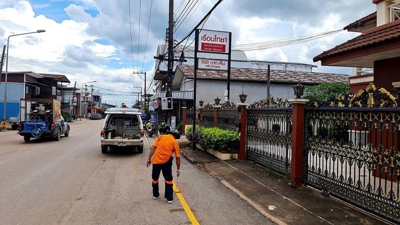 ร.ต.ท. วสันต์ ชัยลา นายกเทศมนตรีตำบลบึงโขงหลง มอบหมายให้นายจิรพัฒน์ หงษ์ทอง หัวหน้างานป้องกันฯ นำทีมงานป้องกันฯ ออกตีเส้นจราจรถนนสายหลักบริเวณหน้าโรงแรมเรือนไทยเกสต์เฮาส์ จุดตักบาตรของประชาชน