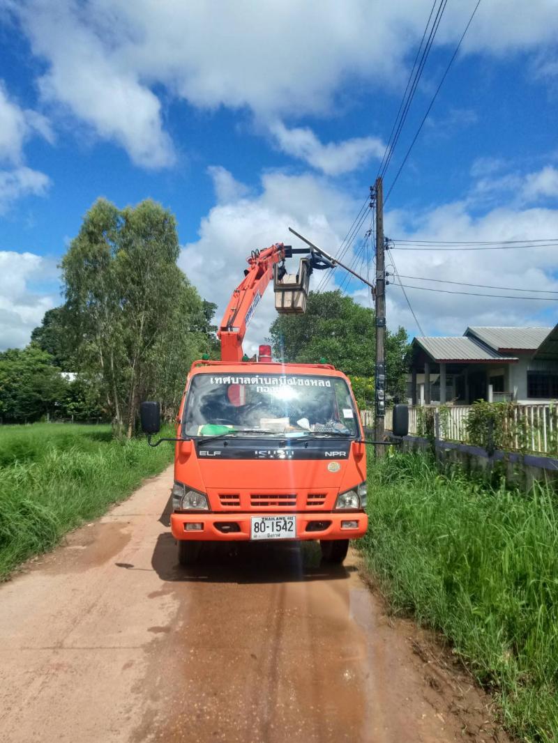 ร.ต.ท.วสันต์ ชัยลา นายกเทศมนตรีตำบลบึงโขงหลง มอบหมายให้เจ้าหน้าที่กองช่าง ซ่อมแซมไฟฟ้าส่องสว่าง บริเวณบ้านดงสว่าง หมู่ที่ 6 ต.โพธิ์หมากแข้ง