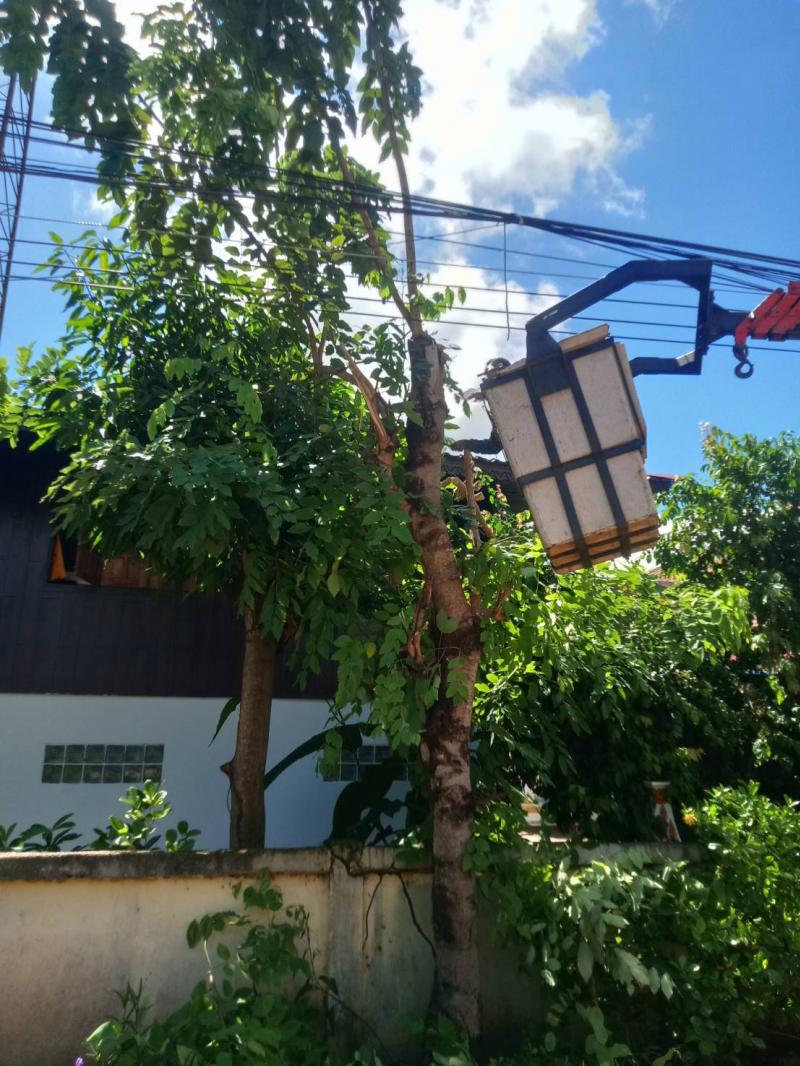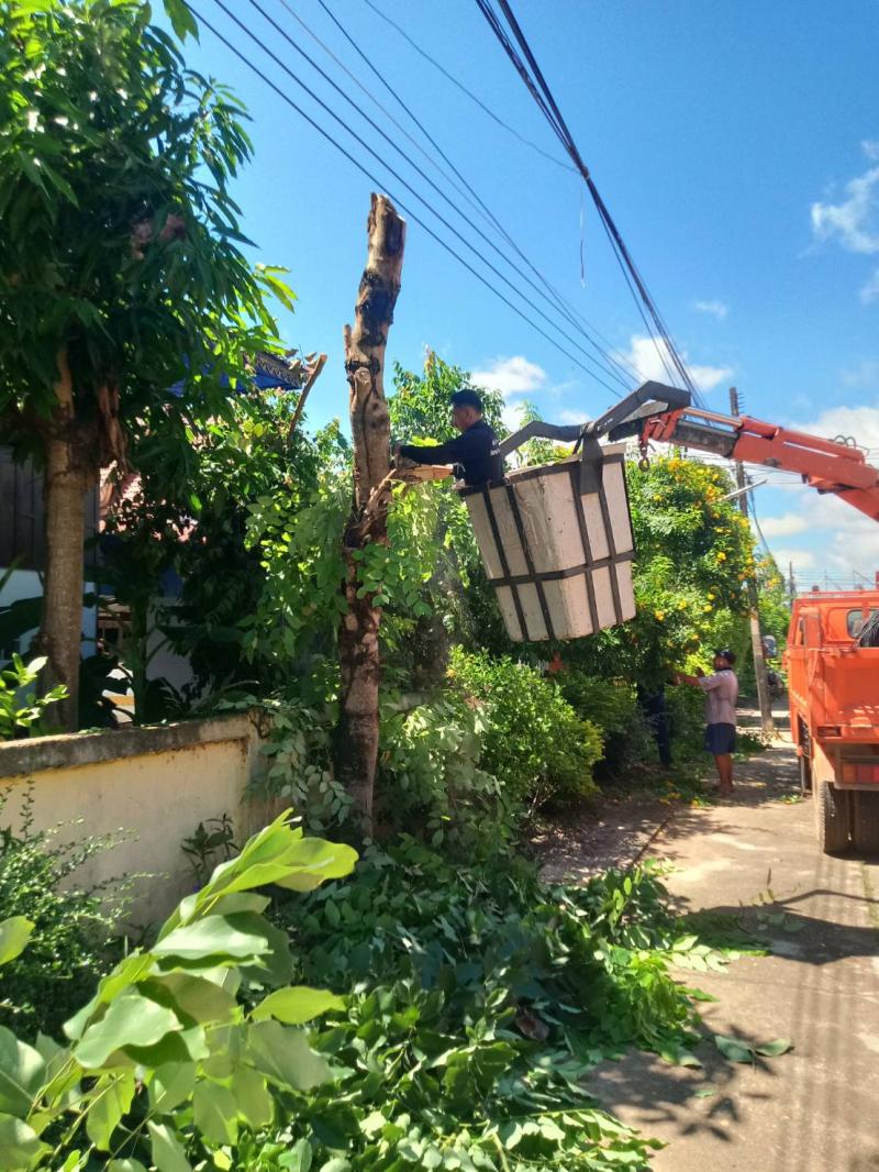 ร.ต.ท.วสันต์ ชัยลา นายกเทศมนตรีตำบลบึงโขงหลง มอบหมายให้เจ้าหน้าที่กองช่าง เทศบาลตำบลบึงโขงหลง ตัดแต่งกิ่งต้นไม้ บริเวณหน้าวัดศิริมงคลวราราม บ้านโนนสว่าง หมู่ที่ 2 ต.บึงโขงหลง