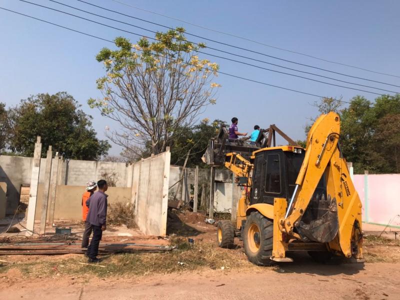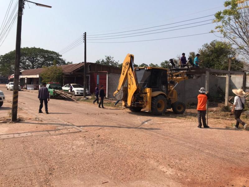 เทศบาลตำบลบึงโขงหลง ทำการรื้อถอนห้องแถว เพื่อเปลี่ยนไปใช้ห้องแถวหลังใหม่