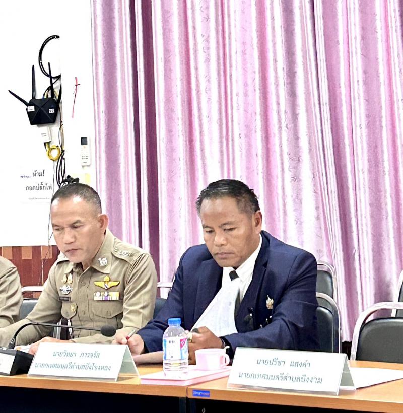 รายละเอียด : วันพฤหัสบดี ที่ 30 ตุลาคม 2568 เวลา 13.30 น. นายวิทยา ภารจรัส นายกเทศมนตรีตำบลบึงโขงหลง, นายถิ่น แดวขุนทด ประธานสภาเทศบาลตำบลบึงโขงหลง เข้าร่วมประชุมหัวหน้าส่วนราชการฯลฯ และกำนันผู้ใหญ่บ้านฯลฯ ประจำเดือน ตุลาคม 2568 โดยมี นายฐิราเชษฐ เลื่อมใส ปลัดอำเภอ (จพง.ปค.ชำนาญการพิเศษ) รักษาราชการแทน นายอำเภอบึงโขงหลง เป็นประธานในการประชุม ณ ห้องประชุมอำเภอบึงโขงหลง (ห้องประชุมเล็ก) จังหวัดบึงกาฬ
