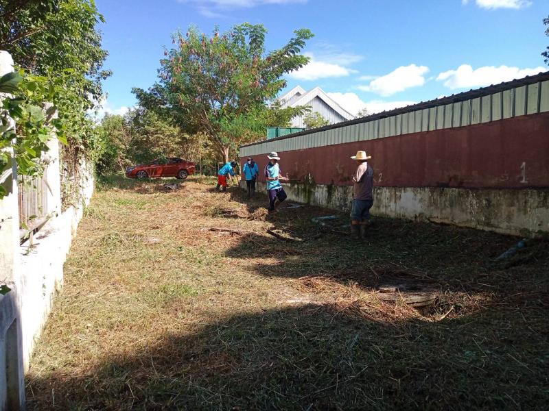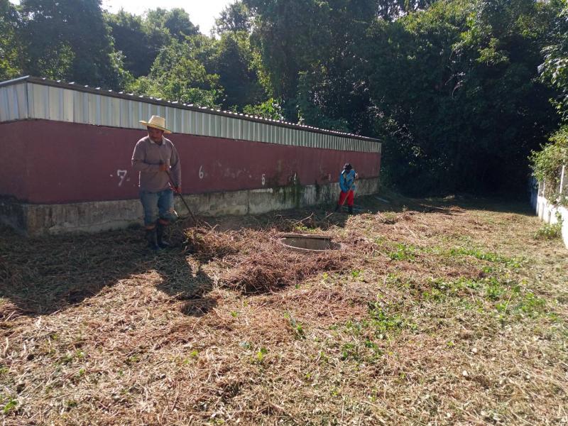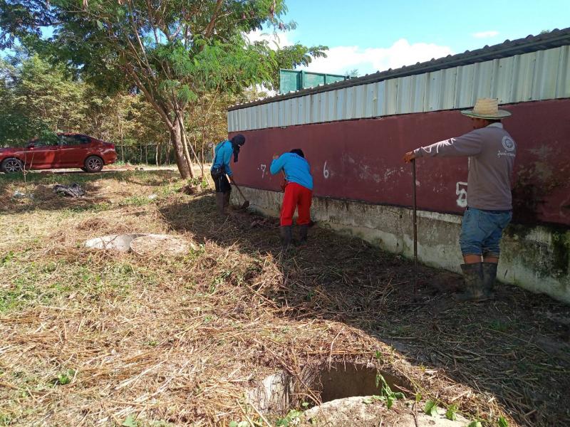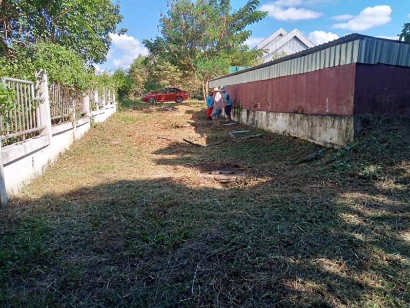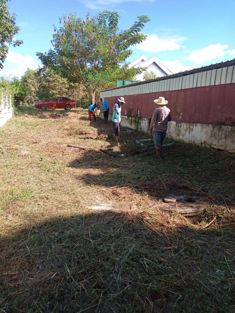 กองสาธารณสุขและสิ่งแวดล้อม ทำความสะอาด ตัดหญ้า บริเวณบ่อบำบัดสิ่งปฏิกูล และเตรียมความพร้อมเพื่อทำความสะอาดบำรุงรักษาระบบบำบัด