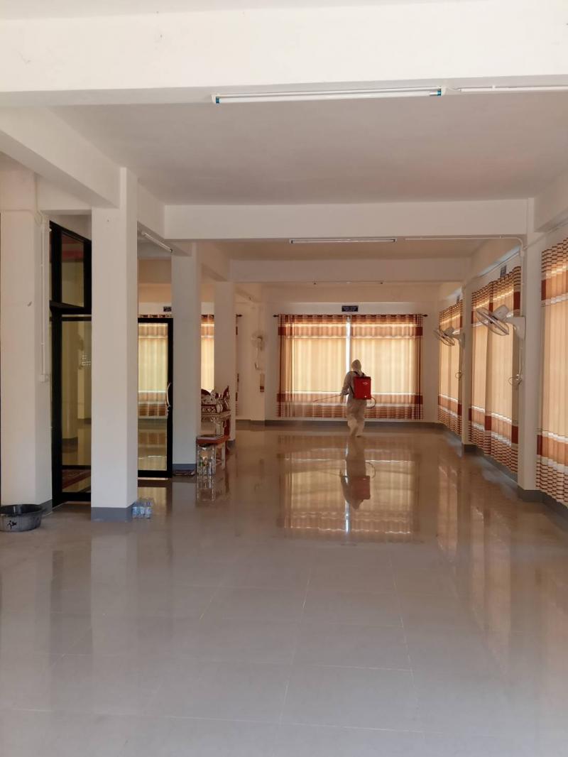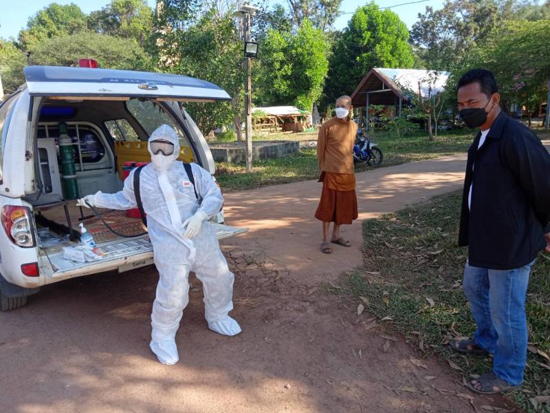 งานป้องกันและบรรเทาสารธารณภัย เทศบาลตำบลบึงโขงหลง ออกปฏิบัติหน้าที่พ่นน้ำยาฆ่าเชื้อ COVID-19 บริเวณวัดสว่างวารี บ้านดอนกลาง