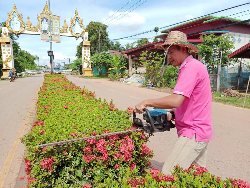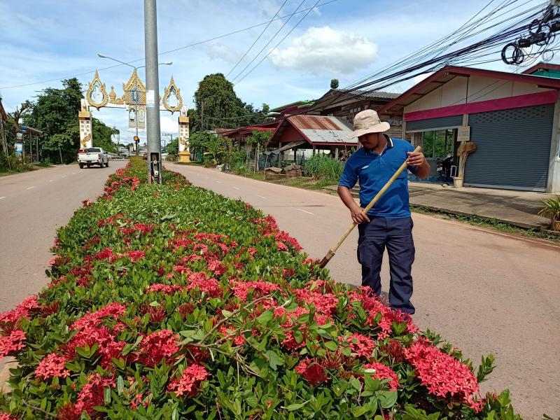 เทศบาลตำบลบึงโขงหลง ตัดหญ้า แต่งกิ่ง กวาดถนน ปรับภูมิทัศน์บริเวณเกาะกลางถนนสายหลัก #สร้างวินัยสร้างบึงกาฬ
