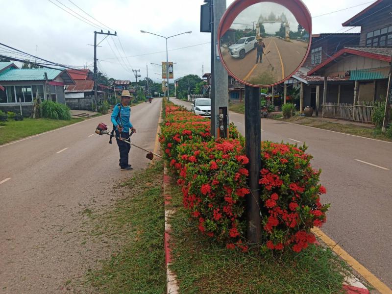 description ทีมงาน RDF เทศบาลตำบลบึงโขงหลง ตัดหญ้า แต่งกิ่ง ปรับภูมิทัศน์เกาะกลางถนนสายหลักโนนหนามแท่ง person admin