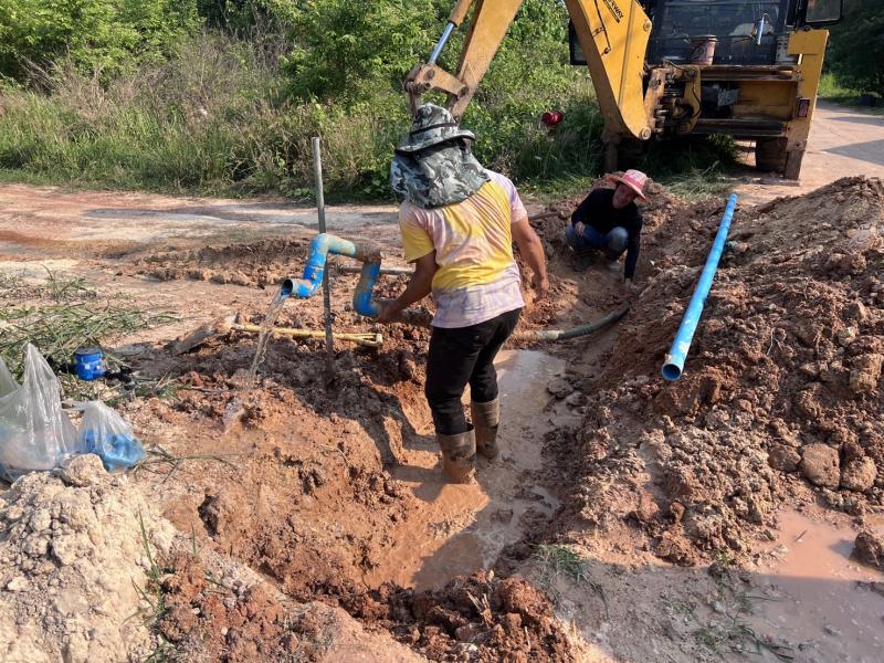 ร.ต.ท.วสันต์ ชัยลา นายกเทศมนตรีตำบลบึงโขงหลง มอบหมายให้เจ้าหน้าที่กองช่าง ซ่อมแซมท่อน้ำประปา บ้านทรายทอง