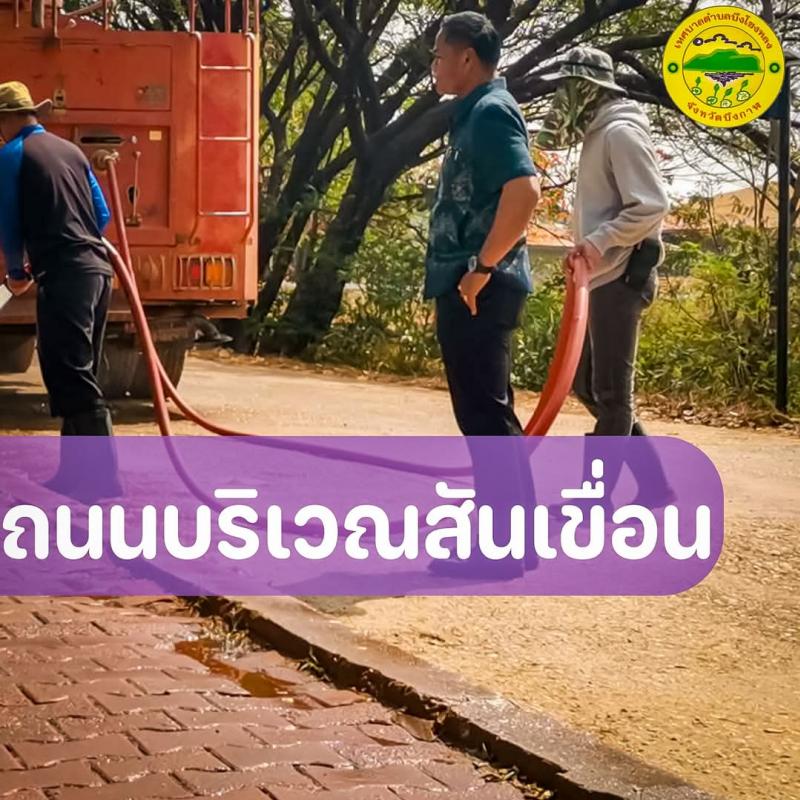 นายกเก่ง นายวิทยา ภารจรัส นายกเทศมนตรีตำบลบึงโขงหลง มอบหมายให้นายวิพากษ์ สารบรรณ ปลัดเทศบาลตำบลบึงโขงหลง นำทีมเจ้าหน้าที่งานป้องกันฯ ลงพื้นที่ล้างถนนบริเวณสันเขื่อน (อ่างเก็บน้ำบึงโขงหลง) บ้านดอนกลาง หมู่ที่ 1