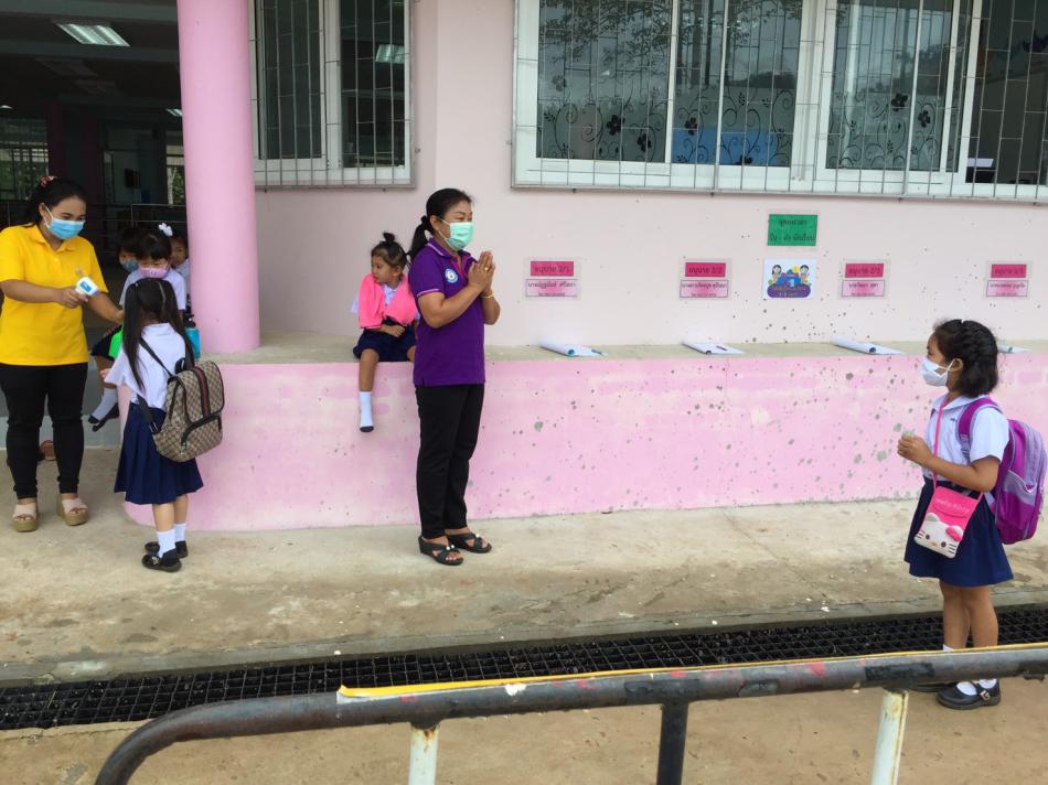 บรรยากาศเปิดเทอม โรงเรียนอนุบาลเทศบาลตำบลบึงโขงหลง ภาพใต้มาตรการควบคุมโรคติดต่อ ต้อนรับเด็กนักเรียนด้วย ผอ.รัชนี ไตรพันธุ์ รักษาการ ผอ.โรงเรียนฯ