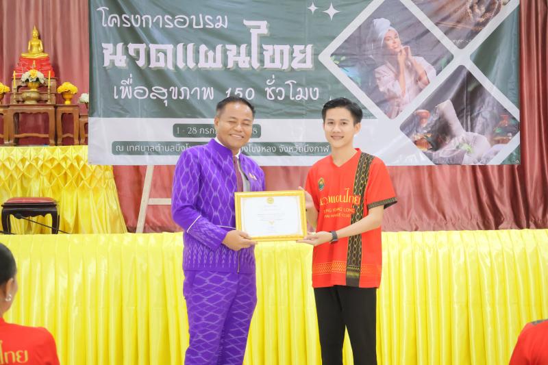 วันอังคาร ที่ 29 กรกฎาคม 2568 เวลา 09.30 น. กองสาธารณสุขและสิ่งแวดล้อม เทศบาลตำบลบึงโขงหลง ได้จัดพิธีมอบประกาศนียบัตรให้กับผู้ผ่านการอบรมหลักสูตรนวดไทยเพื่อสุขภาพ 150 ชั่วโมง ประจำปีงบประมาณ 2568 จำนวน 40 คน โดยมี นายกเก่ง วิทยา ภารจรัส นายกเทศมนตรีตำบลบึงโขงหลง เป็นประธานในการมอบประกาศนียบัตรฯ ณ ห้องประชุมเทศบาลตำบลบึงโขงหลง อำเภอบึงโขงหลง จังหวัดบึงกาฬ