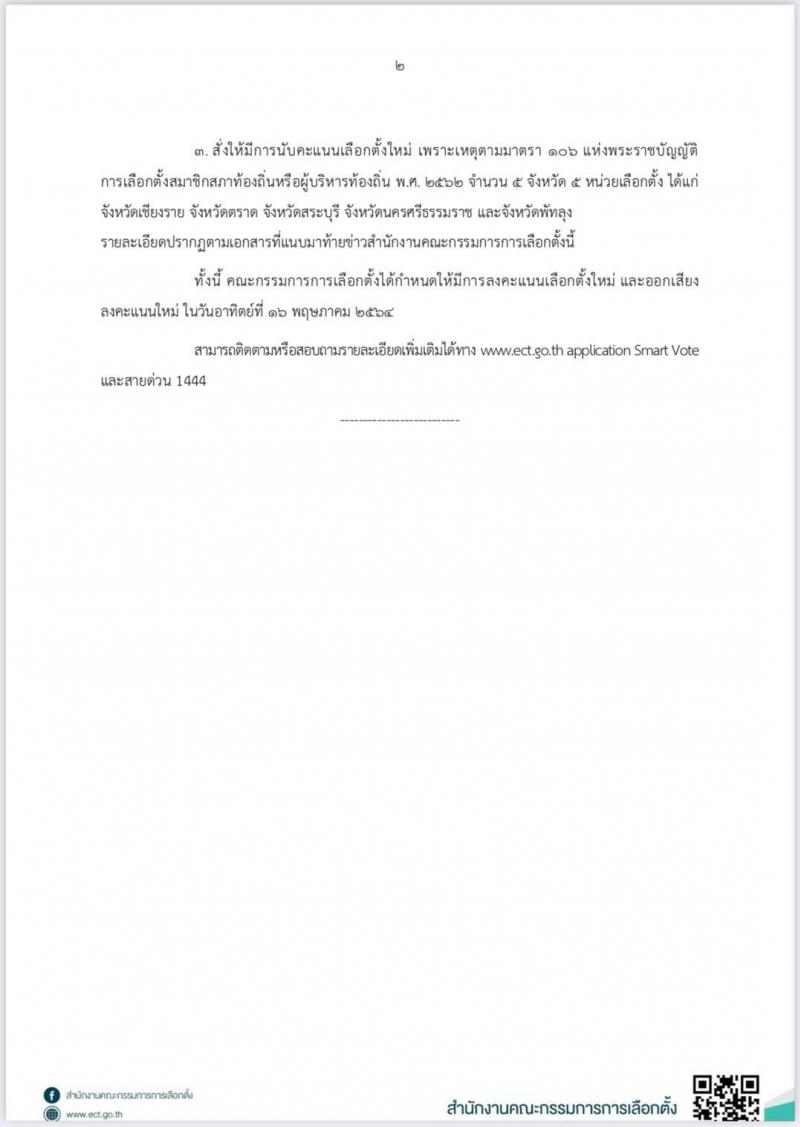 กกต. สั่งให้มีการลงคะแนนใหม่ ออกเสียงลงคะแนนใหม่ และนับคะแนนเลือกตั้งใหม่