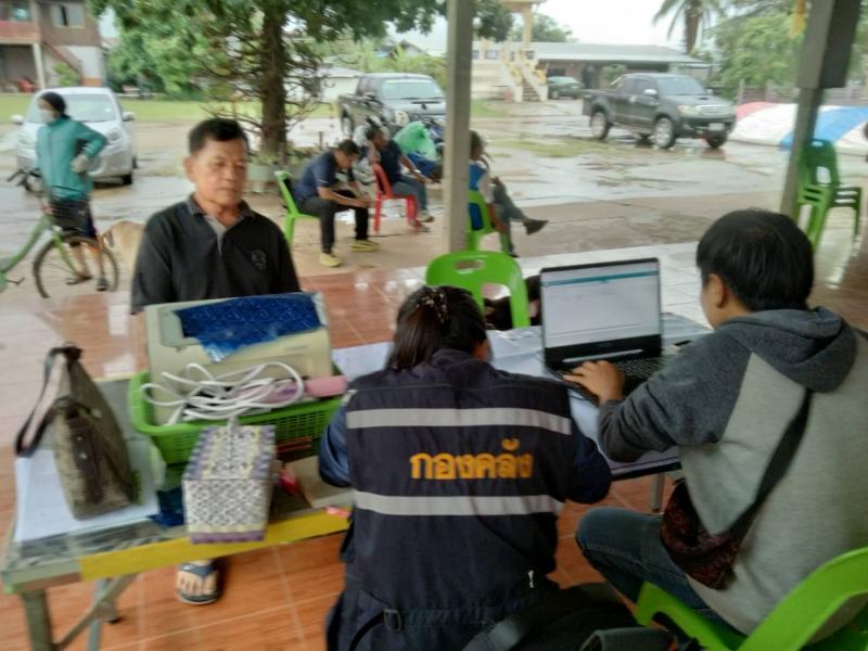 งานพัฒนารายได้ กองคลัง เทศบาลตำบลบึงโขงหลง ออกบริการรับชำระภาษีที่ดินและสิ่งปลูกสร้าง ภาษีป้าย เพื่ออำนวยความสะดวกแก่ประชาชนและร้านค้าที่ยังไม่ชำระภาษีประจำปี 2565 บ้านโพธิ์หมากแข้ง หมู่ที่ 1 ต.โพธิ์หมากแข้ง