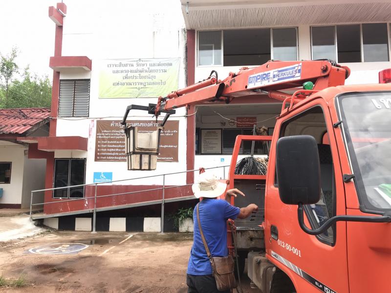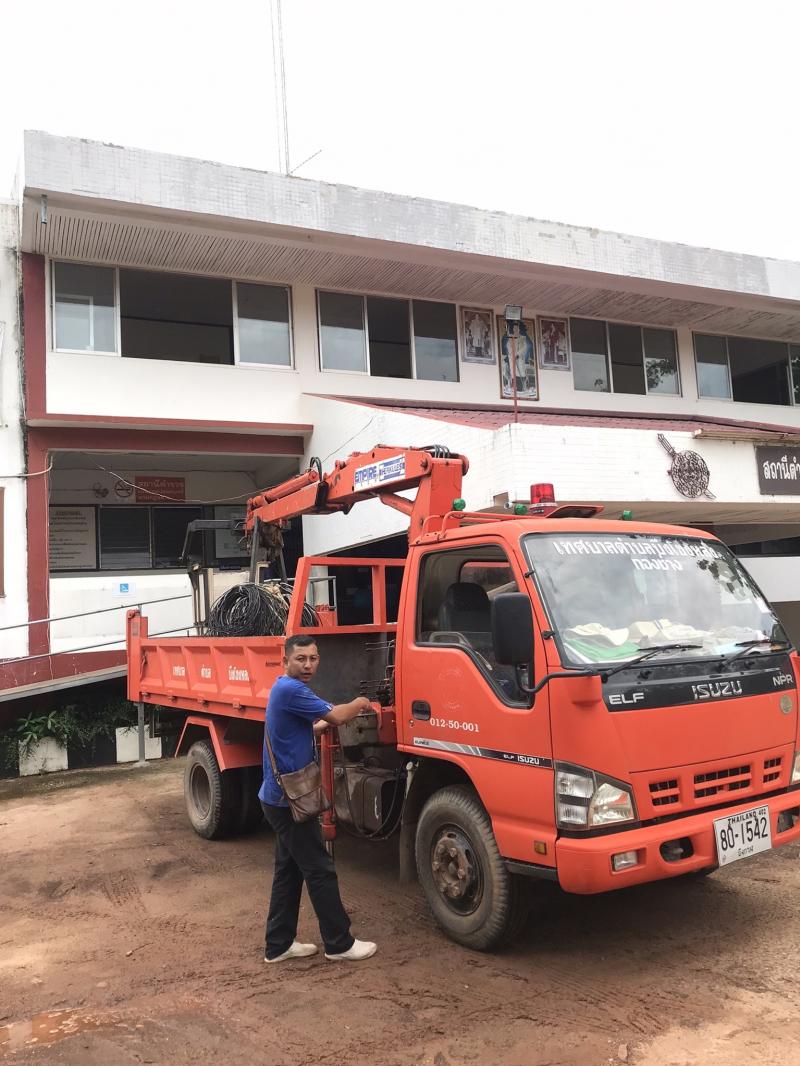 description กองช่าง เทศบาลตำบลบึงโขงหลง นำรถกระเช้าไฟฟ้า ติดตั้งป้ายให้สถานีตำรวจภูธรบึงโขงหลง ที่ขอความอนุเคราะห์จากเทศบาลตำบลบึงโขงหลง person admin