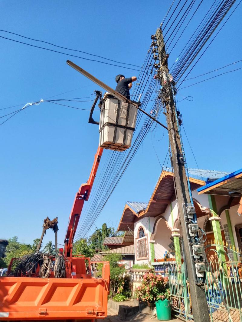 เทศบาลตำบลบึงโขงหลง ได้รับมอบหมายจาก ร.ต.ท.วสันต์ ชัยลา นายกเทศมนตรีตำบลบึงโขงหลง ให้นำรถกระเช้า ออกปฏิบัติหน้าที่ซ่อมแซมไฟฟ้าส่องสว่าง บริเวณชุมชนบ้านดอนกลาง ต.บึงโขงหลง