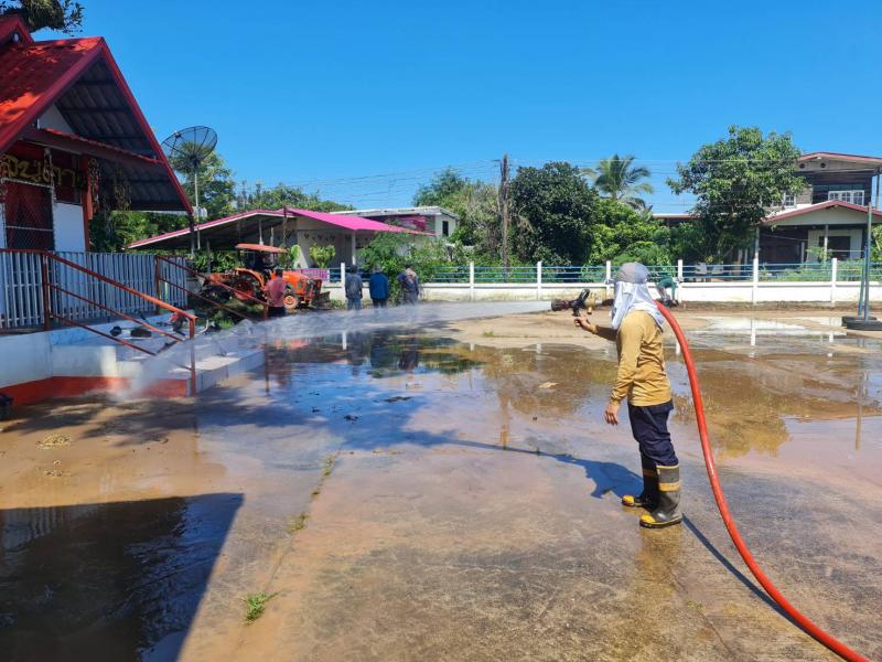 ร.ต.ท.วสันต์ ชัยลา นายกเทศมนตรีตำบลบึงโขงหลง มอบหมายให้งานป้องกันและบรรเทาสาธารณภัย นำรถบรรทุกน้ำดับเพลิง เอนกประสงค์ ฉีดล้างทำความสะอาดบริเวณศาลาประชาคมบ้านหนองสิม หมู่ที่ 9 ต.โพธิ์หมากแข้ง