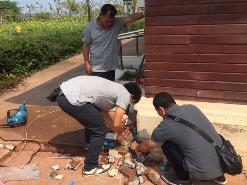 เทศบาลตำบลบึงโขงหลง ซ่อมท่อน้ำประปาน้องน้ำสวนสาธารณะ