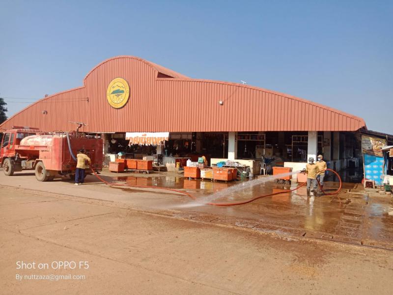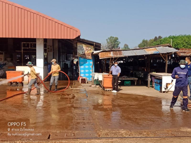 ร.ต.ท.วสันต์ ชัยลา นายกเทศมนตรีตำบลบึงโขงหลง มอบหมายให้นายคมกฤษ ภาษี รองนายกเทศมนตรี นำทีมเจ้าหน้าที่กองสาธารณสุขและสิ่งแวดล้อม และเจ้าหน้าที่ฝ่ายงานป้องกันและบรรเทาสาธารณภัย เทศบาลตำบลบึงโขงหลง นำรถบรรทุกน้ำดับเพลิง เอนกประสงค์ ฉีดล้างพื้น และล้างร่องระบายน้ำบริเวณตลาดสดเทศบาลตำบลบึงโขงหลง