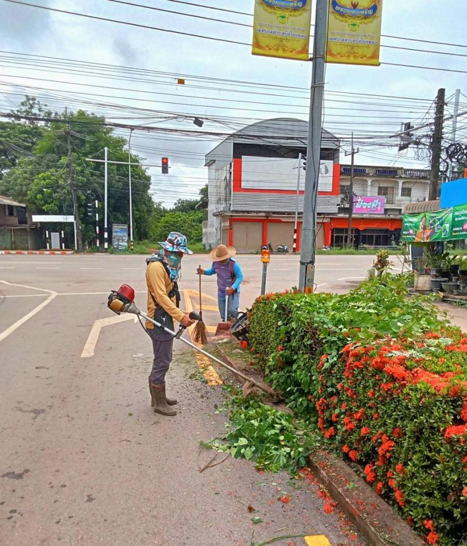 ตัดหญ้าและกำจัดวัชพืช พร้อมเก็บกวาดบริเวณเกาะกลางถนน [20 สิงหาคม 2568]