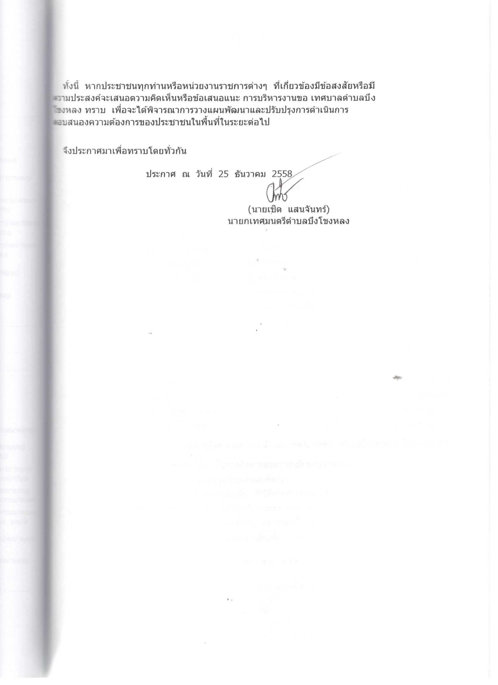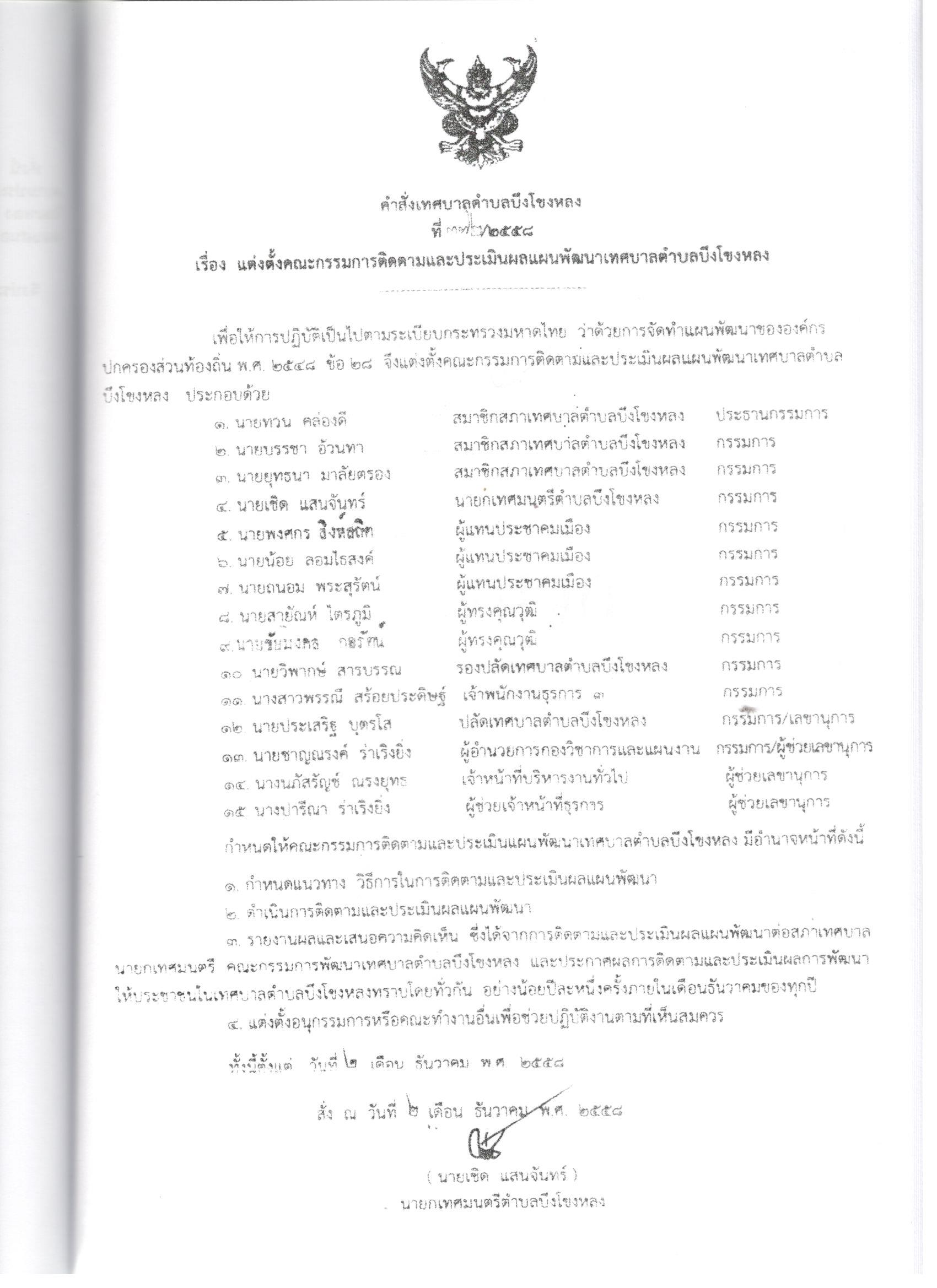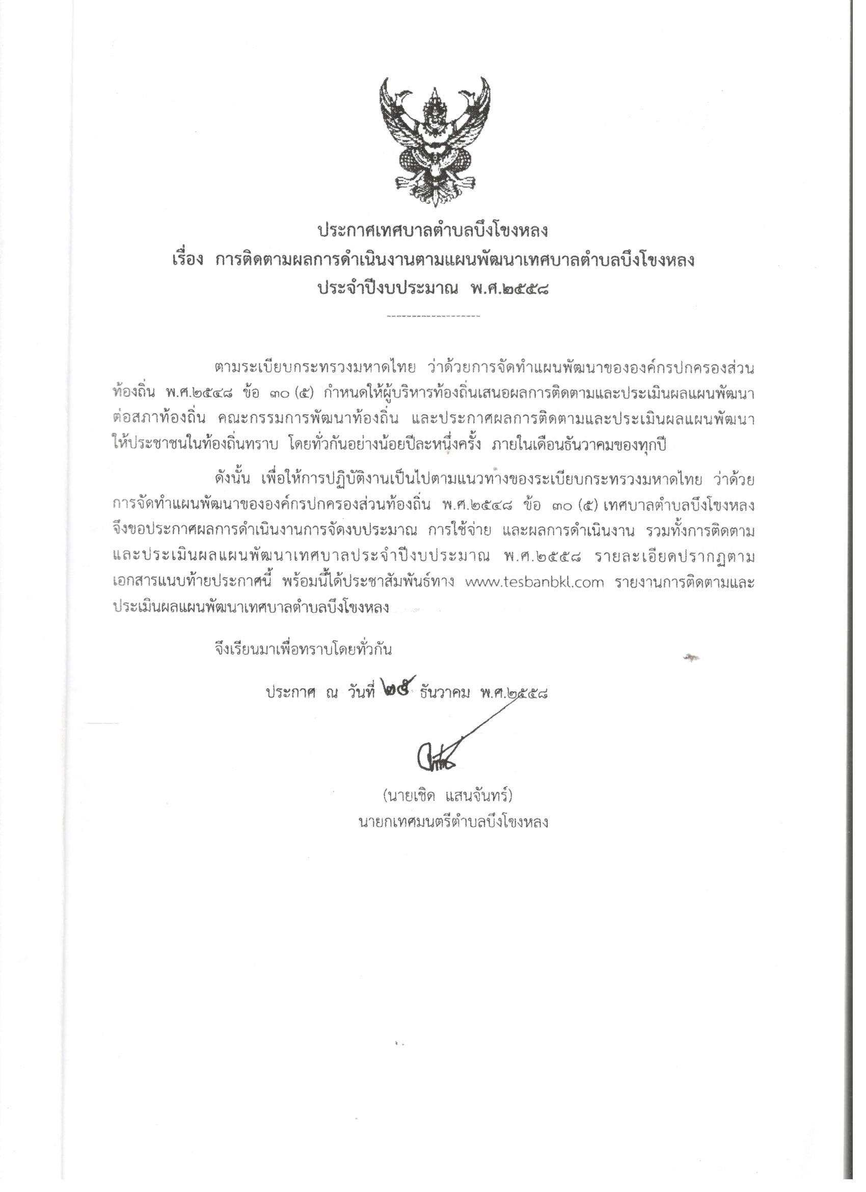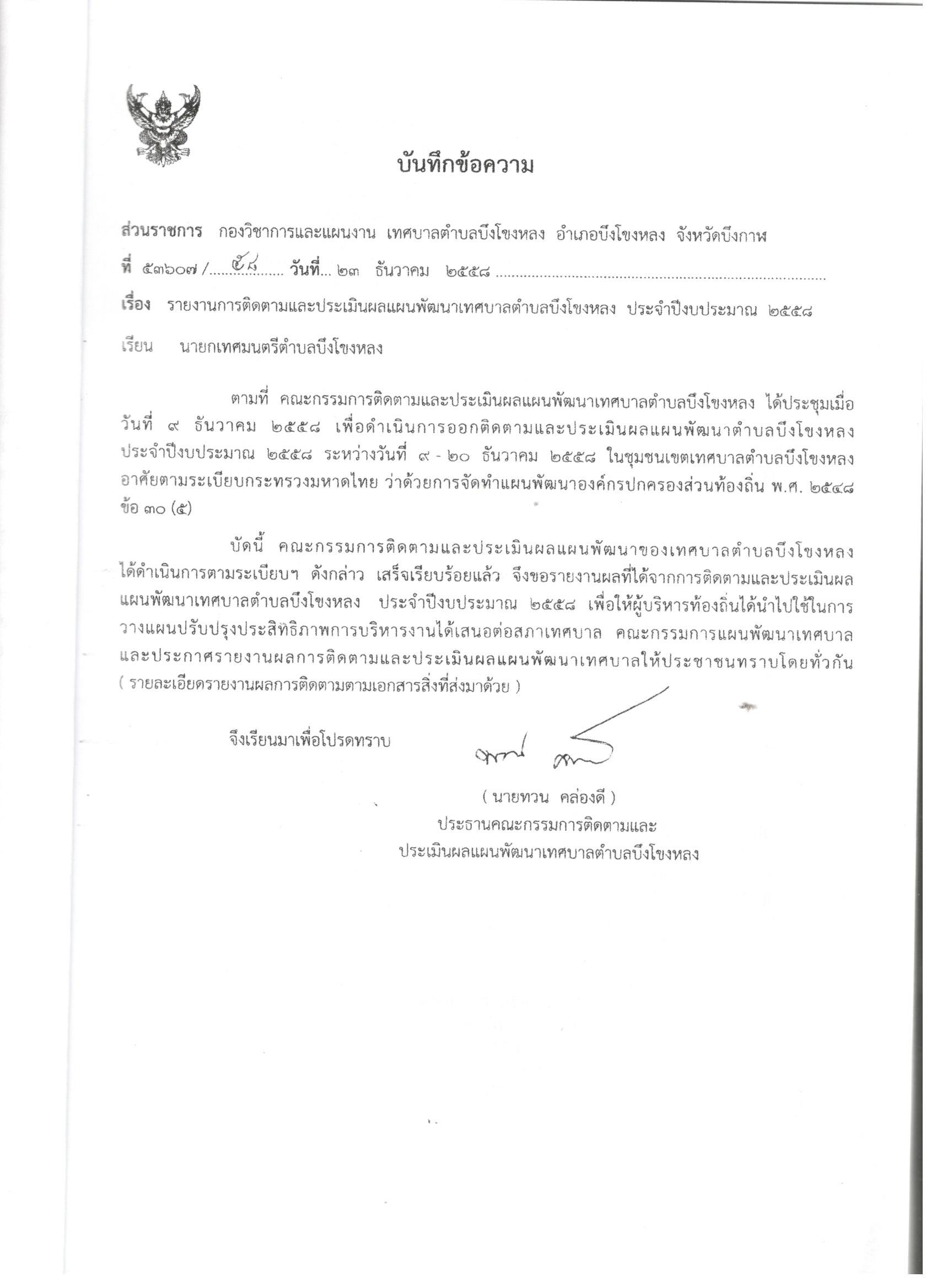 รายงานการติดตามและประเมินผลแผนพัฒนาเทศบาลตำบลบึงโขงหลง ประจำปี 2558