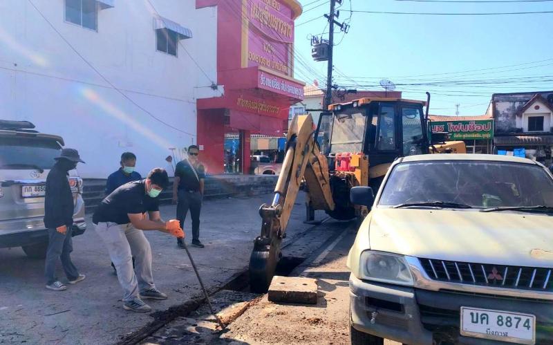 ลงพื้นที่แก้ไขท่อระบายน้ำอุดตันบริเวณตลาดเทศบาลตำบลบึงโขงหลง